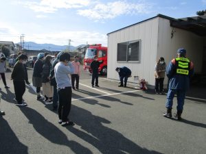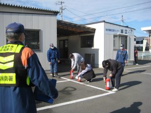内 容 : 災害時の避難訓練、初期消火訓練、消防署職員からの評価と指導